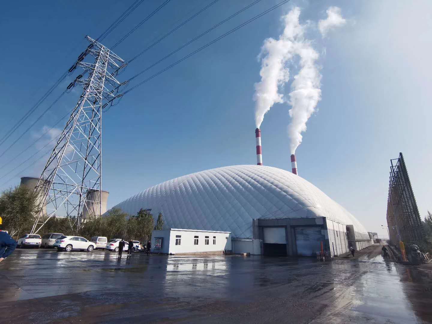 該項目于今年4月1日開工建設,由中國能源建設集團廣東火電工程有限公司承建,總投資1935萬元。項目對汽車卸煤溝進行全封閉改造,封閉結構為氣膜封閉,占地跨度88米、長度108米,高度滿足汽車卸煤進出需求,最高點不低于30米,封閉面積約10000平米。項目實施后,可徹底解決汽車卸煤溝粉塵污染及運煤車輛廠外排隊堵塞交通的問題,大幅提高廠區(qū)內外及周邊環(huán)境質量,同時每年可為企業(yè)減少粉塵排放排污稅約400萬元。