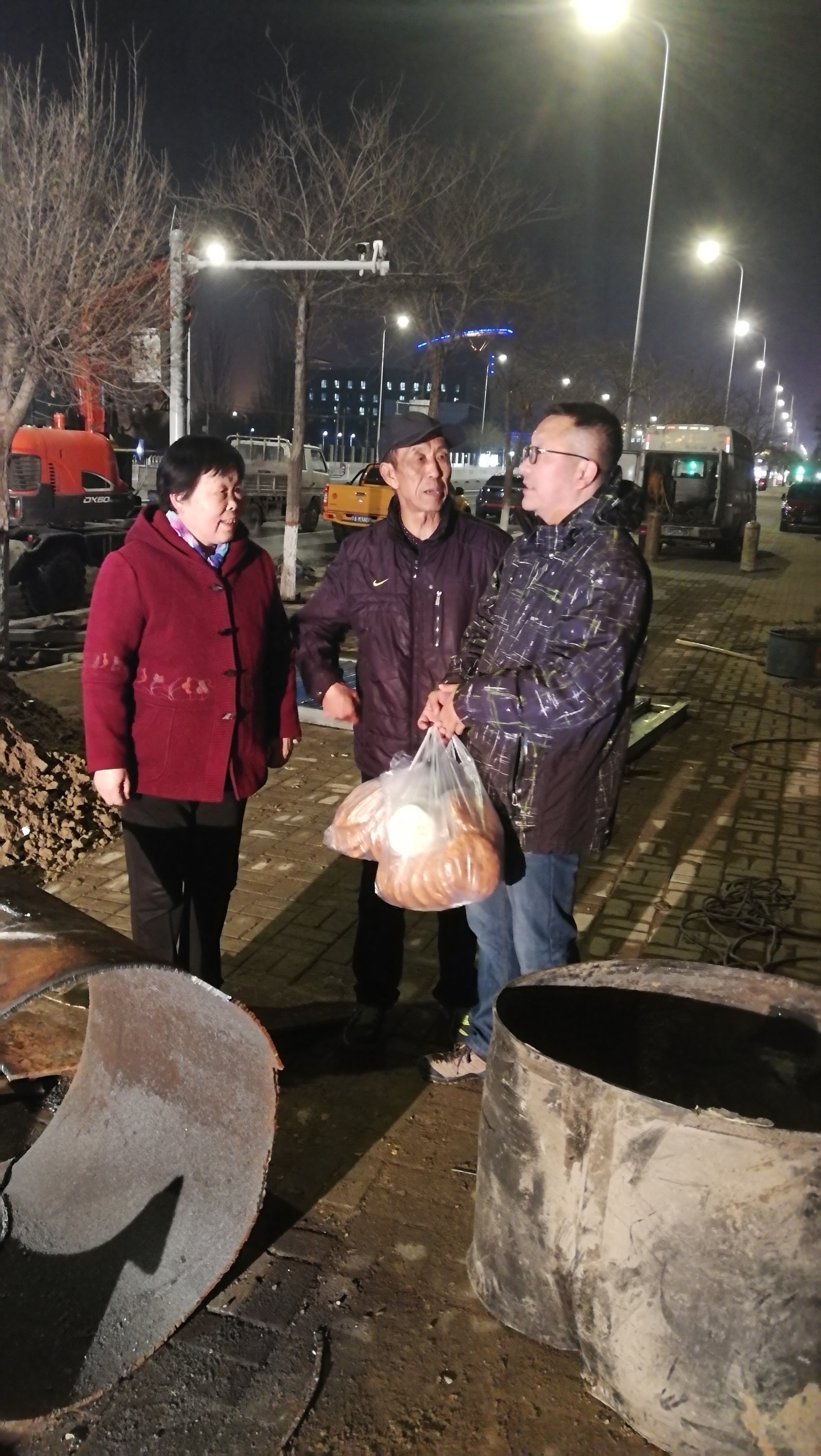 搶修期間,發(fā)生了一件暖心的事。兩位家住同心路的老人,在寒冷的傍晚專程打車趕到供暖搶修現(xiàn)場(chǎng),為寒冬中一直堅(jiān)守和奮戰(zhàn)在供暖一線的搶修人員送來油餅和暖心問候?!靶』镒?,你們辛苦了。看新聞知道你們干了一天,這么冷的天,沒吃沒喝的,我們老兩口來給你們送點(diǎn)吃的,暖氣修好了,身體可別垮了啊?!眱晌焕先蒜Р患胺赖臏厍樽寛?jiān)守在供暖一線的電投熱力人瞬間淚目。一個(gè)餅子、一句話,頓時(shí)消除了大家的疲憊,一股暖流涌上心頭。“您暖了,我們才放心!”熱力公司搶修人員用實(shí)際行動(dòng)回報(bào)著熱用戶的理解和支持。 (熱力公司 龍 梅)