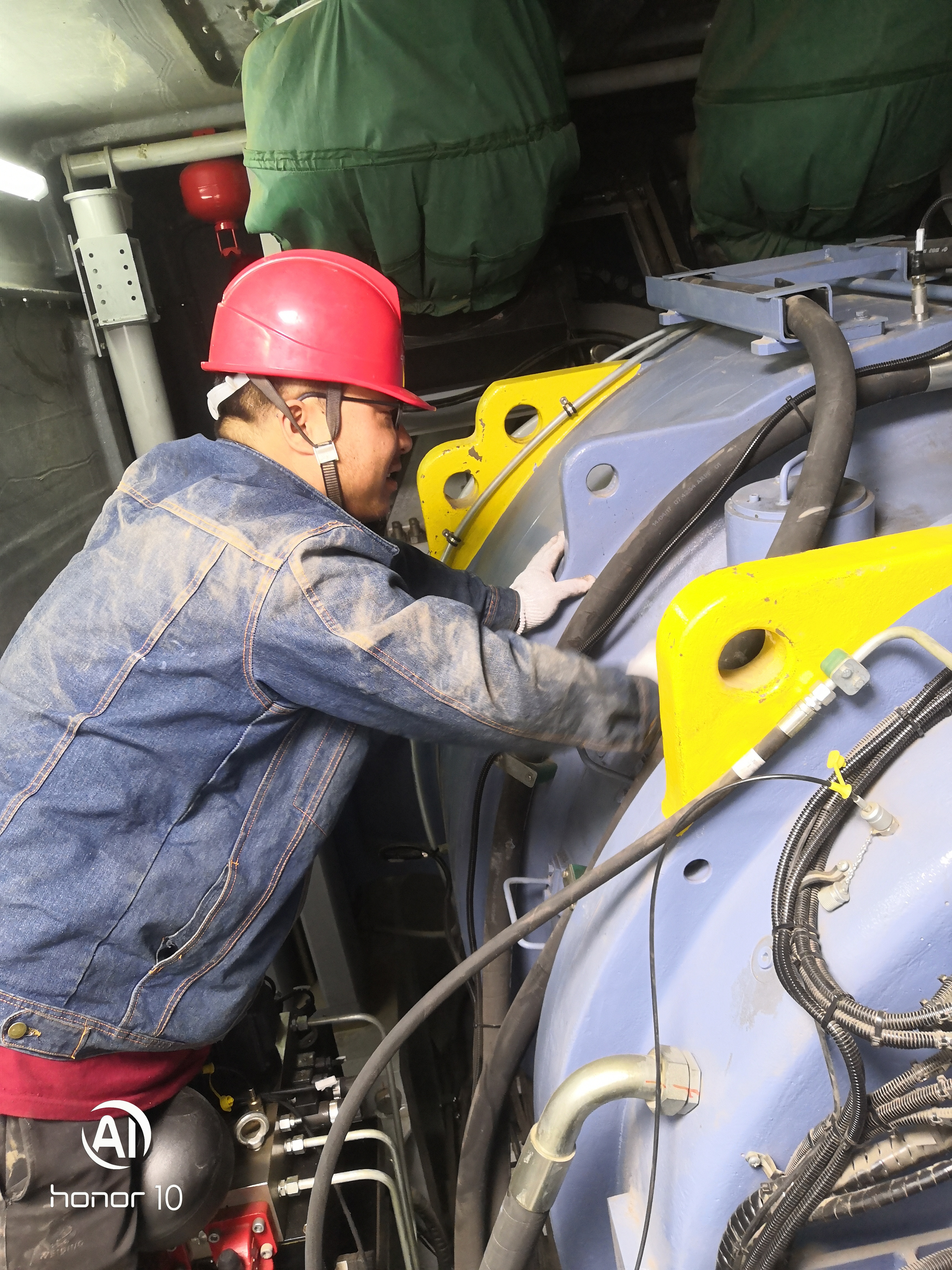 做好安全措施后,根據(jù)風(fēng)機(jī)顯示“變槳通訊故障”判斷,我們將故障點(diǎn)鎖定在了輪轂控制系統(tǒng)上。進(jìn)入輪轂內(nèi)部,首先要對主軸鎖定。我們?nèi)齻€(gè)人分工,由兩人配合打開高速剎車盤防護(hù)罩,對主軸進(jìn)行手動(dòng)盤車,另外一個(gè)人守在機(jī)械鎖定銷處,等待位置契合后將鎖定銷插入。此時(shí)機(jī)艙內(nèi)異常悶熱,在接近5m/s的風(fēng)速下,手動(dòng)盤車也極耗力氣,不一會(huì)兒,汗水就像斷線的珠子一樣滴落下來。鎖定主軸后還來不及歇息,我們又貓著腰、爬行著穿過狹窄的通道進(jìn)入輪轂內(nèi)部,經(jīng)更換EL6751模塊后,通訊恢復(fù),我們隨即欣喜地解除了所有安全措施??稍趩C(jī)過程中才發(fā)現(xiàn)故障遠(yuǎn)沒有這么簡單,我們再次做好安全措施,進(jìn)入輪轂內(nèi)部,依次對EL6751模塊之前的十個(gè)EL1008模塊更換檢查。終于,在換到第七個(gè)模塊時(shí),風(fēng)機(jī)順利通過自檢測試成功并網(wǎng)。大家情不自禁地?fù)粽茟c祝,頭上的汗水仍然大顆大顆地滴落著,工作服上被汗水浸染出了一道道白色的波浪線。下塔后,大伙才感覺饑腸轆轆,時(shí)間早已是午夜時(shí)分。