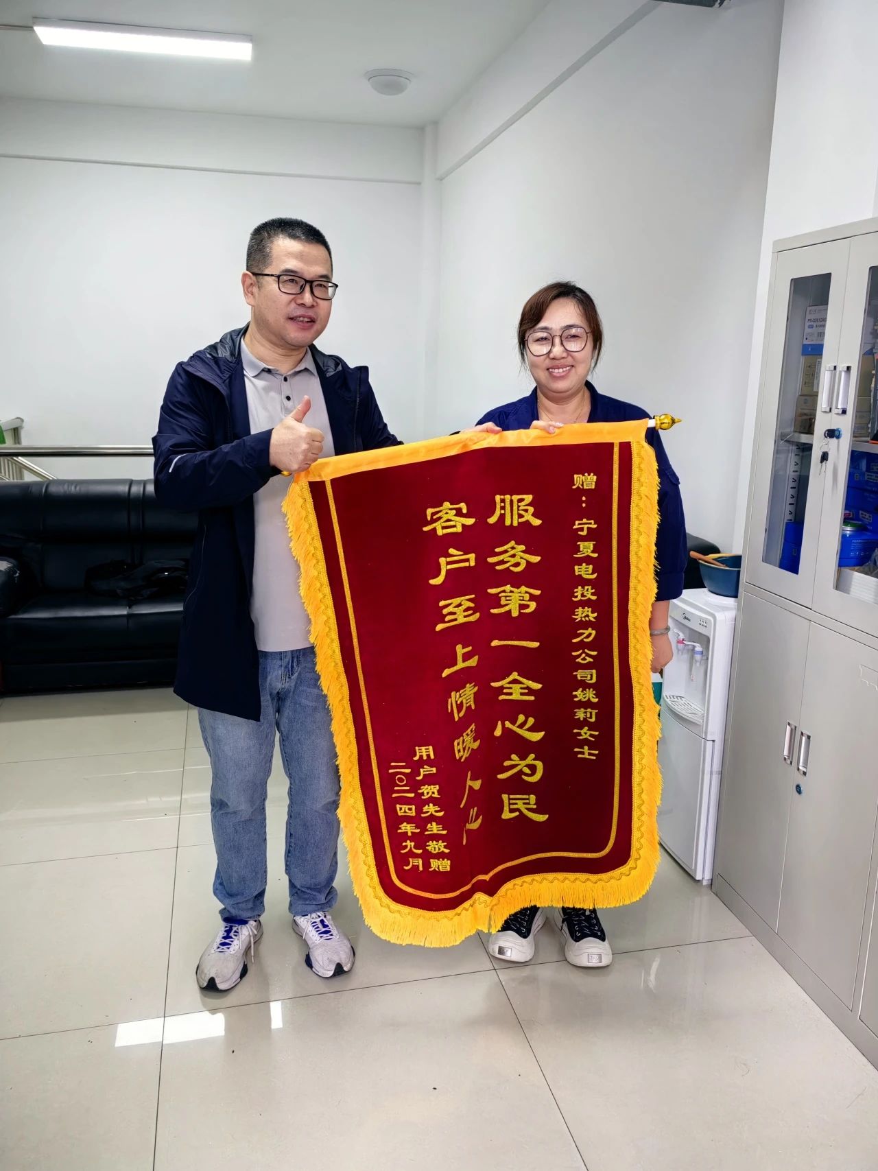 9月13日,學府中央熱用戶賀先生將一面印有“服務第一全心為民、客戶至上情暖人心”的錦旗,送到熱力公司運行服務部業(yè)務四部業(yè)務經理姚莉手中,以此表達姚莉妥善解決自己5年來因房屋產權買賣而導致的采暖費糾紛的感謝。